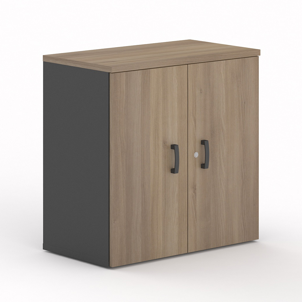 Deze melamine draaideurkast is 83 cm. hoog en leverbaar in 6 verschillende kleurcombinaties.
